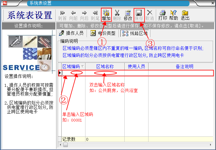 電價(jià)設(shè)置好之后,就設(shè)置區(qū)域。