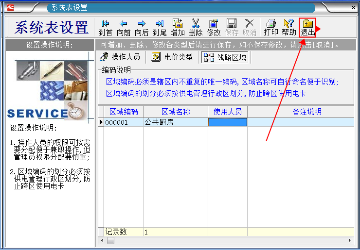 “區(qū)域”的意思就是,你想把電表分成幾個(gè)區(qū)域使用,你就設(shè)置幾個(gè)區(qū)域。如(你有6只電表,想分成ABC三個(gè)區(qū)域,A區(qū)的用戶 不能在BC區(qū)使用,B區(qū)的用戶不能在AC區(qū)使用,C區(qū)的用戶不能在AB區(qū)使用。 如果想讓所有的用戶在所有的電表上都能使用的話,就1個(gè)區(qū)域就可以了)。