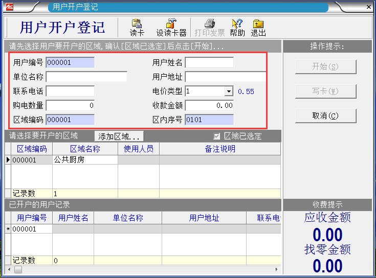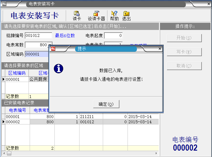 系統(tǒng)設(shè)置完成之后,把IC卡插入讀卡器,就進(jìn)入制作“區(qū)域設(shè)置卡”。如下圖