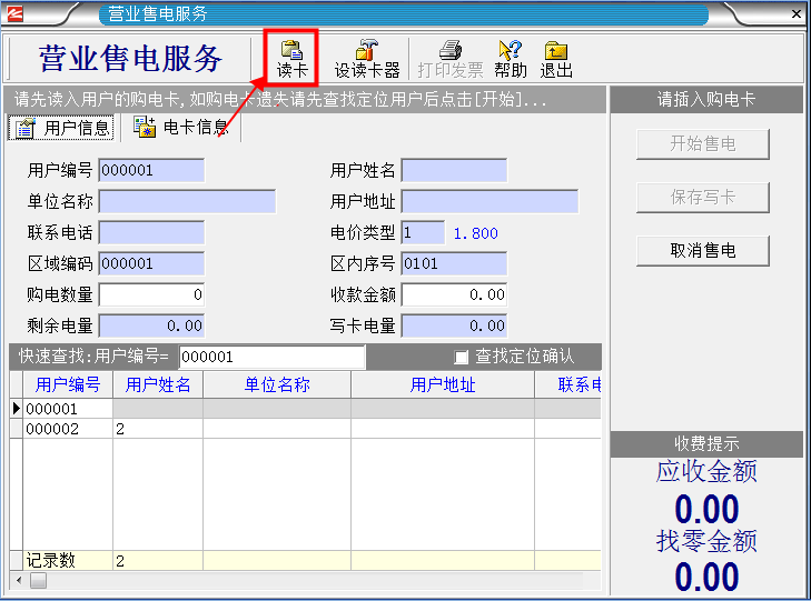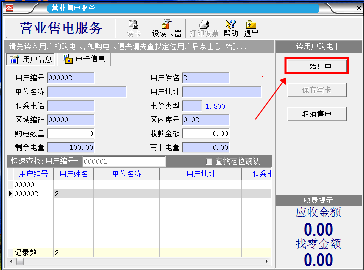 1.首先把用戶購電卡插入讀卡器,然后單擊“營業(yè)售電