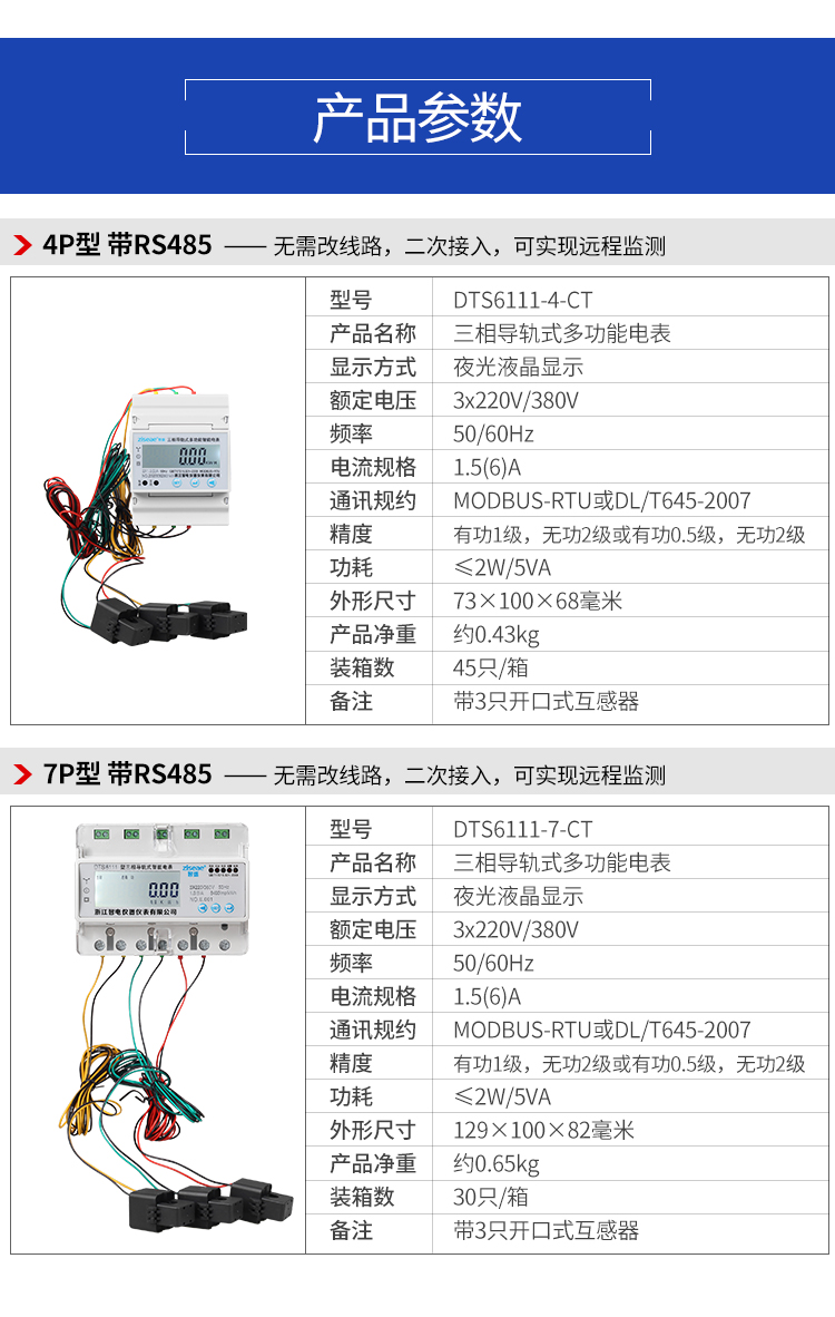 DTS6111、DSS6111型三相導軌式二次互感遠程監測電能表(7P)