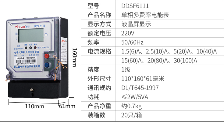 DDSF6111單相電子式多費(fèi)率電能表,采用單片機(jī)處理系統(tǒng)設(shè)計(jì)而成,具有電路簡(jiǎn)單、可靠性高、成本低等優(yōu)點(diǎn)。該產(chǎn)品軟件、硬件、結(jié)構(gòu)設(shè)計(jì)技術(shù)先進(jìn),計(jì)量精度高,結(jié)合單片機(jī)資源,實(shí)現(xiàn)電能分時(shí)計(jì)量,具有紅外及RS-485通信功能,抗干擾、防攻擊性能好,工作溫度范圍寬,能長期穩(wěn)定可靠工作。該產(chǎn)品各項(xiàng)性能指標(biāo)符合國家GB/T 17215-2002《1級(jí)和2級(jí)靜止式交流有功電能表》、GB/T 15284-2002《復(fù)費(fèi)率(分時(shí))電能表特殊要求》、DL/T 645-1997《多功能電能表通信規(guī)約》等標(biāo)準(zhǔn)的技術(shù)要求。