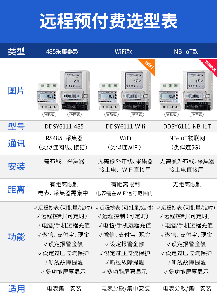 本公司DDSY6111/DDZY6111遠程智能電表與本公司遠程抄表系統和手機APP配套使用,遠程抄表管理系統具有實時抄表、定時抄表外,還提供了設備管理功能,如告警、余額短信通知、遠程充值、手機抄表、手機查詢、手機充值、預付費、后付費、自助充值機充值、遠程拉合閘、各種查詢報表、統計報表下載等功能。