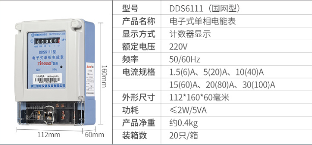 DDS6111型單相電子式電能表,由于采用集成電路和SMT制造工藝,使之測量準確度,穩定性等均得到了可靠保證.適用計量額定頻率為50Hz,額定電壓為220V的單相交流有功電能.